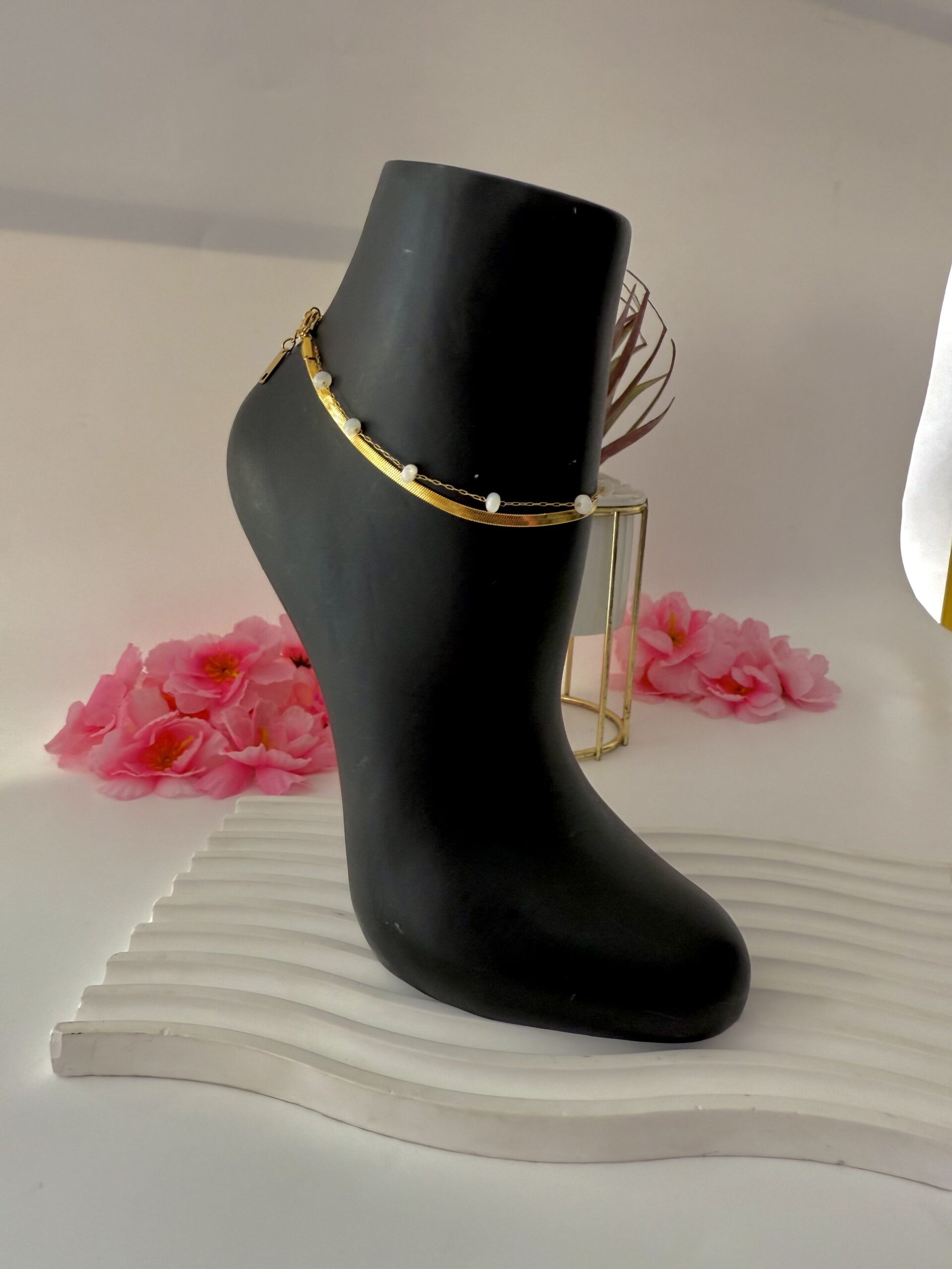 HEIRRINGBONE PEARL ANKLET